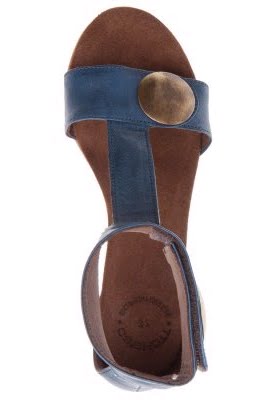 FERRO - design limpo! Em azul e marrom de couro liso e sandália de camur?a revela a Shott Ca. Simples e minimalista, o conceito de design: as linhas limpas, elementos de design de repeti??o determinam a aparência organizada. A pulseira em toda a parte dianteira do pé é encontrado tanto como uma cinta traseira com fecho de velcro no tornozelo. Ambos s?o conectados por uma pulseira adicional em todo o peito do pé. Grandes bronze-colorido, etiquetas redondas com um olhar de antiguidades s?o a única decora??o na sandália. O único plano se encaixa perfeitamente com o design simples e faz a palmilha flexível - junto com a camur?a suave conforto meia forro garantias. Simplesmente elegante - FERRO!